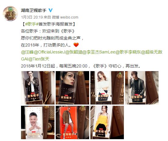 本周,湖南卫视《歌手2018》官微公布了首发歌手名单,阵容非常强大!其中包括汪峰、张韶涵、Gai等中国明星,还有一位英国重量级歌手——Jessie J。