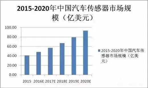 目前中国是最大的汽车生产和消费国家, 所以中国自然是汽车传感器应用大国。2016年我国汽车传感器市场规模增长到48亿美元, 预计到2020年将达到93亿美元。